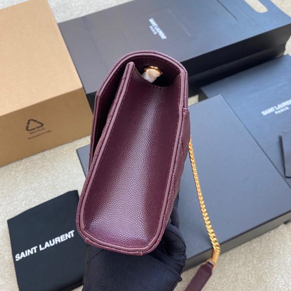 原厂皮YSL新款 Envelope 小号21CM 信封包 精品专供,枣红色球纹/金扣YSL新款 Envelope#小号21CM。采用原厂粒面压花绗缝纹真皮,经典就是永恒。 这款包包的美感体现在V纹……