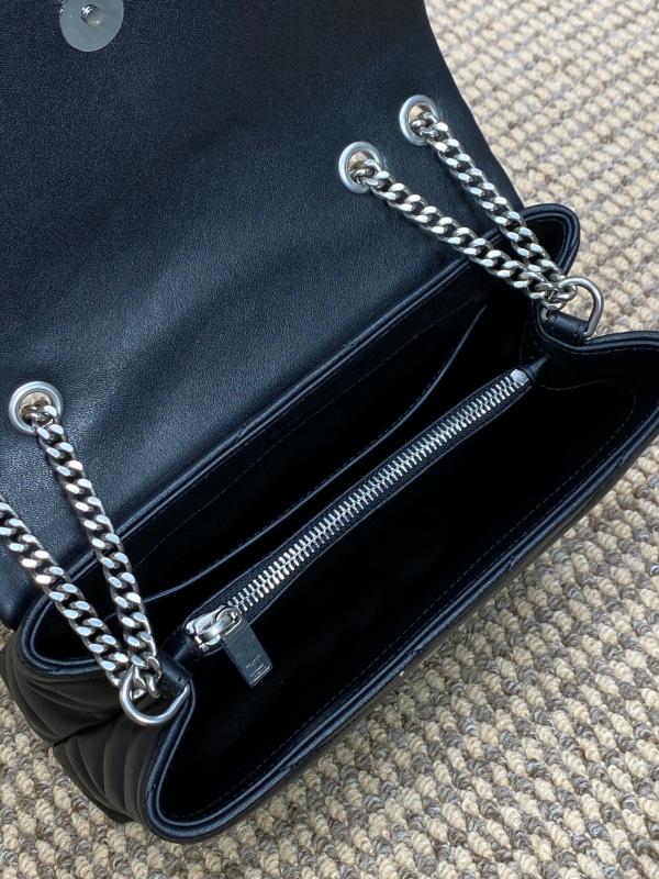 0 YSL 小号长形信封挎包 经典柔和造型前翻盖包 带金属联结YSL标志 金属和真皮链条肩带以及Y字形拼接缝合 尺寸25cm编码392277