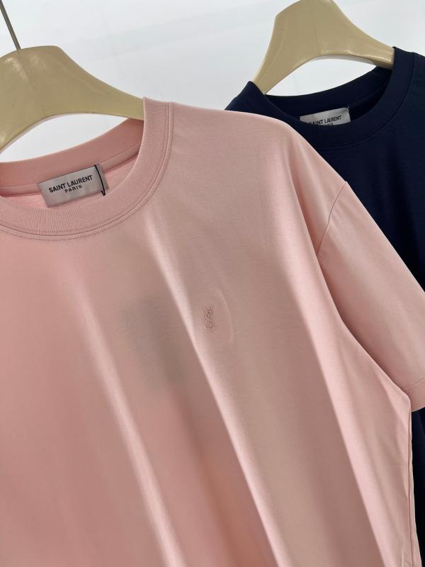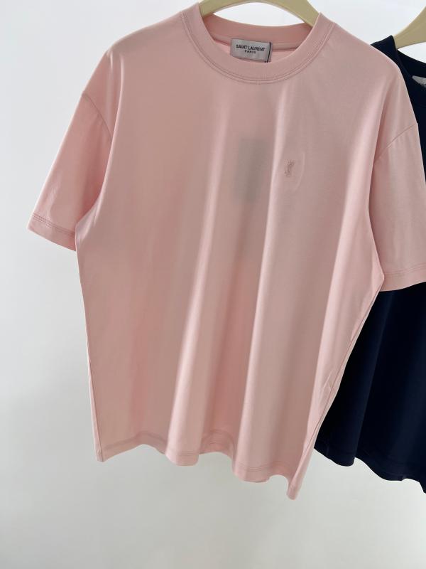 YSL桑蚕丝本色经典小标刺绣T 短袖T恤
