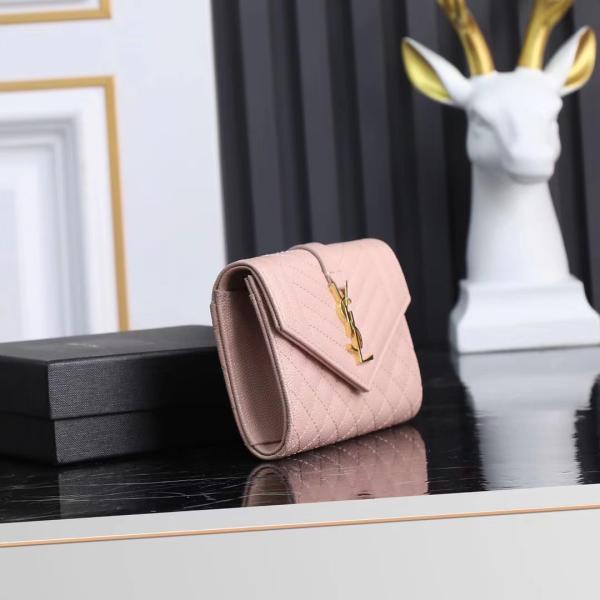 YSL两折信封零钱包 最新款到货! MONOGRAM小号MIX MATELASSÉ粒面压印皮革信封钱包,饰有金属YSL字母标志,以及竖纹、V形纹和方形混合绗缝包缝。 这款钱包集卡包和短包功……