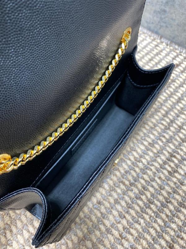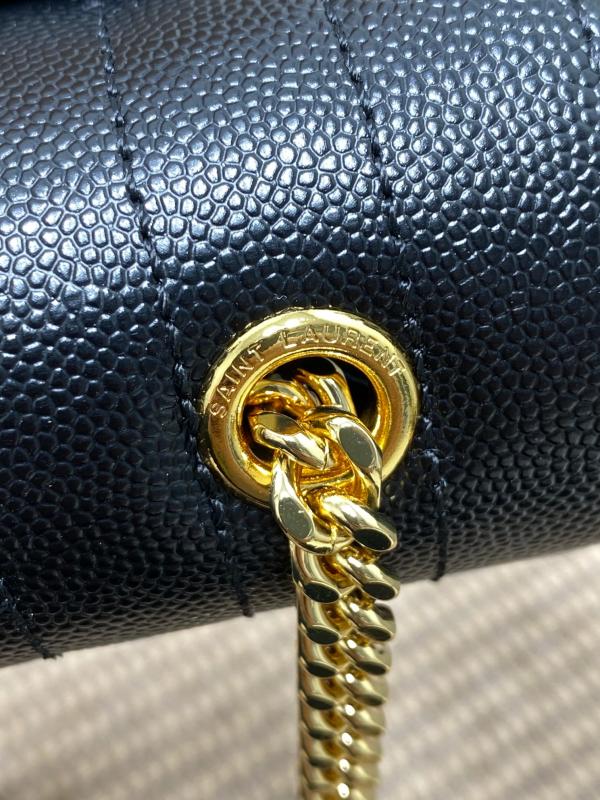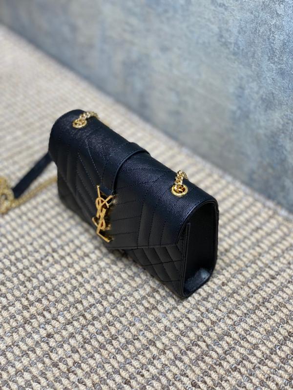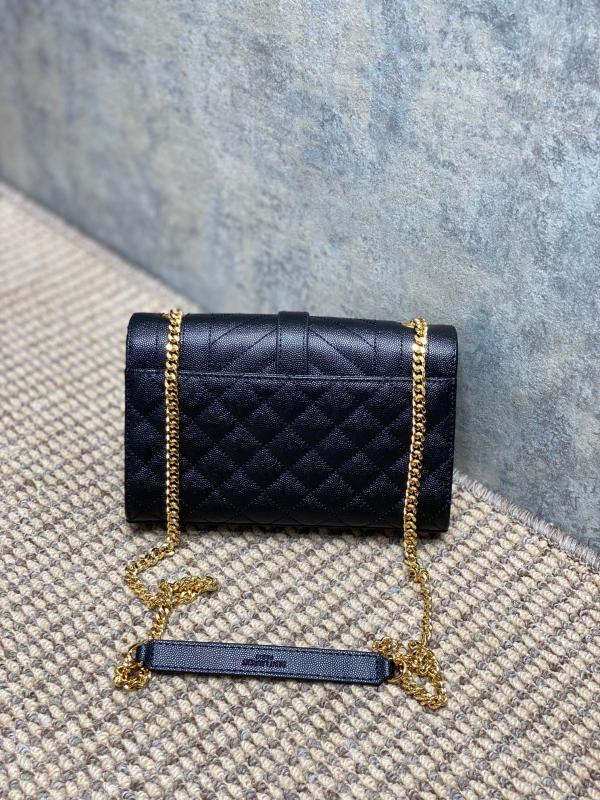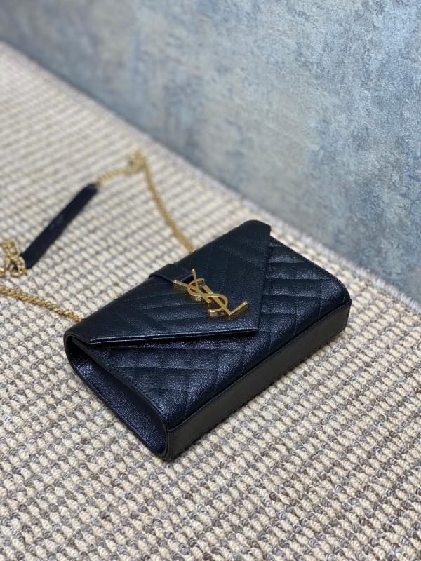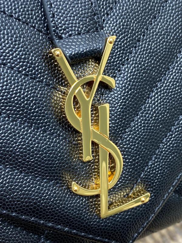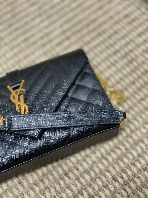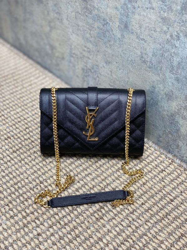 YSL 新款 真皮球纹小信封包 这款YSL新款小信封包,以绗缝纹理皮精心制成,展现出优雅的真皮球纹质感。 它配备了抛光金色五金件,包括精致的链式肩带和翻盖设计,让你能……